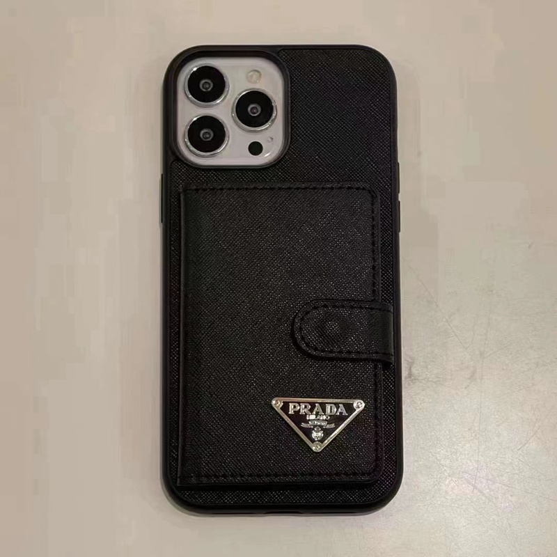 プラダブランドiphone15/14plusケースカードポケット付き